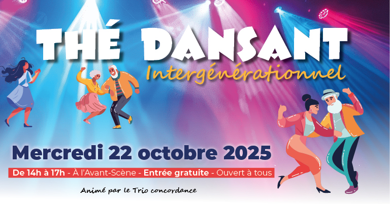 Venez mercredi 22 octobre, de 14h à 17h, pour le thé dansant intergénérationnel à l’Avant-Scène. Vous avez apprécié l'édition précédente ? Cette journée conviviale revient avec les musiciens du Trio Concordance. Venez nombreux, entre amis, avec vos enfants et petits-enfants pour un moment festif ! En entrée libre, ouvert à tous Parking gratuit à disposition