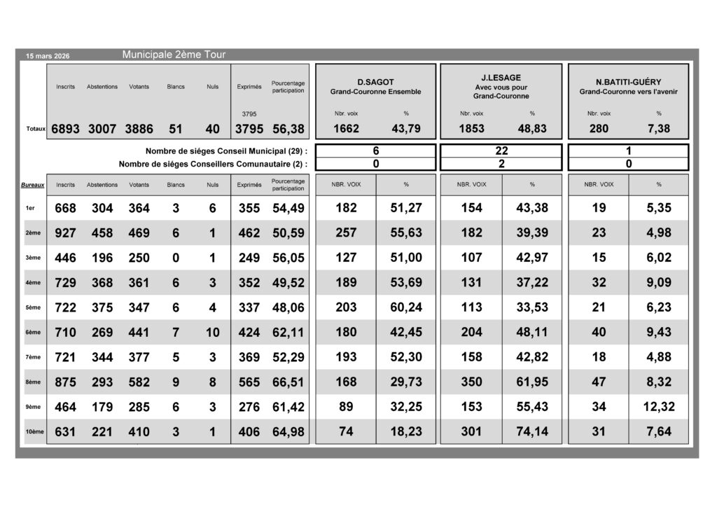Résultats du 2ème tour des élections répartis par bureaux de vote